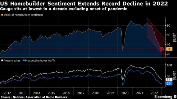 美国 12 月独栋住宅建筑商信心连续第 12 个月下降,创有记录以来最长连降,因为在当前高通胀和高利率环境下,即便争相为潜在买家提供激励,也未能提高看房流量和销量。