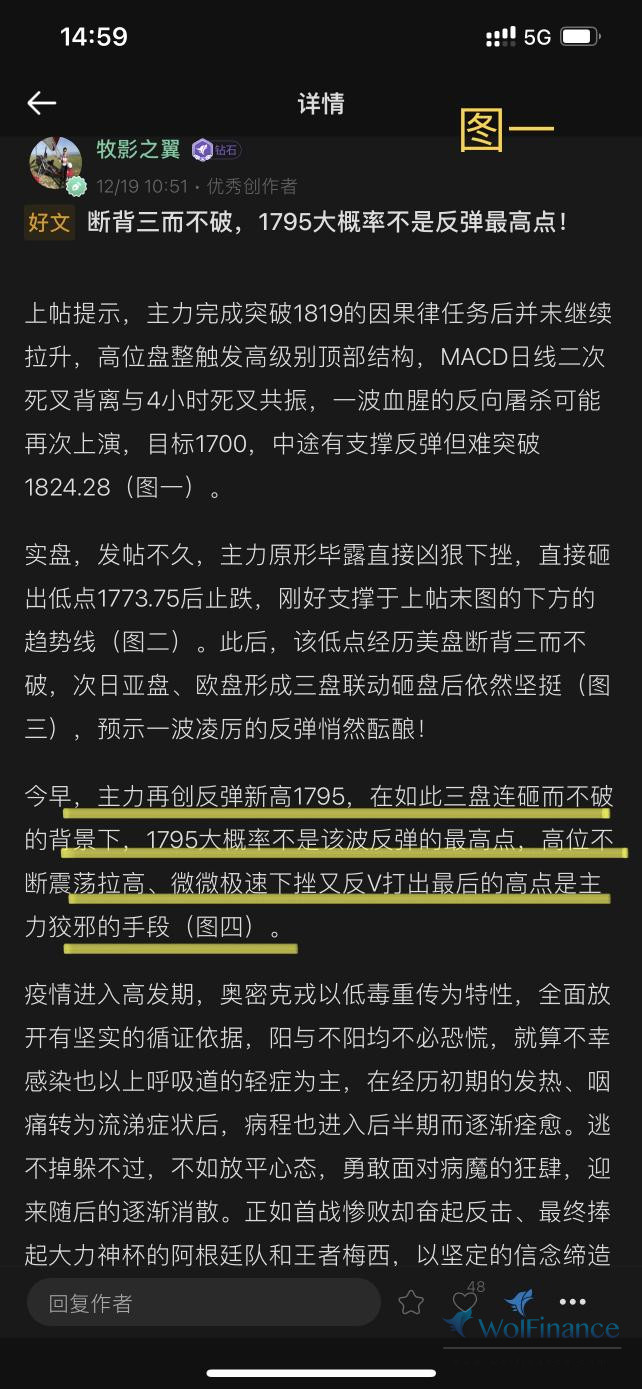 上帖提示,主力三盘联动砸盘不破1773.75的结构背景下,1795大概率不是本轮反弹的最高点,并警惕主力可能采取高位不断震荡拉高、微微极速下挫又反V打出最后高点的手段重拾跌势(图一)。