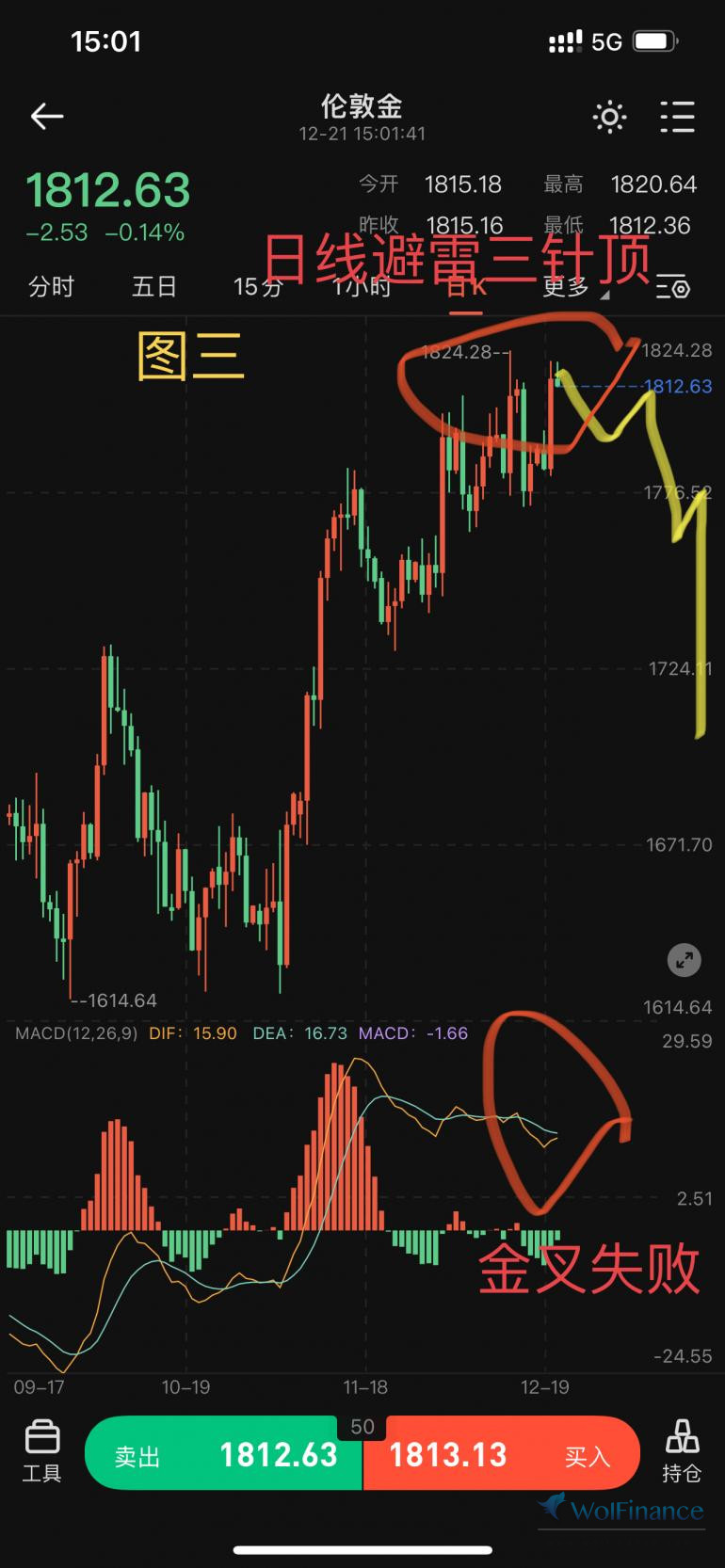 目前,主力高位破底三角后于1812处暂时止跌,如不能向上突破前高1824.28及时改变结构形成日线金叉,在罕见的日线MACD二次死叉背离压制下,跌深1700-1686区域的大调整大概率无法避免,而这最佳的上攻时效也就在今日下午5时前,也就是说多头在该时间节点前不做为,任由日线避雷针三顶结构成型(图三),即可宣判多头极刑!