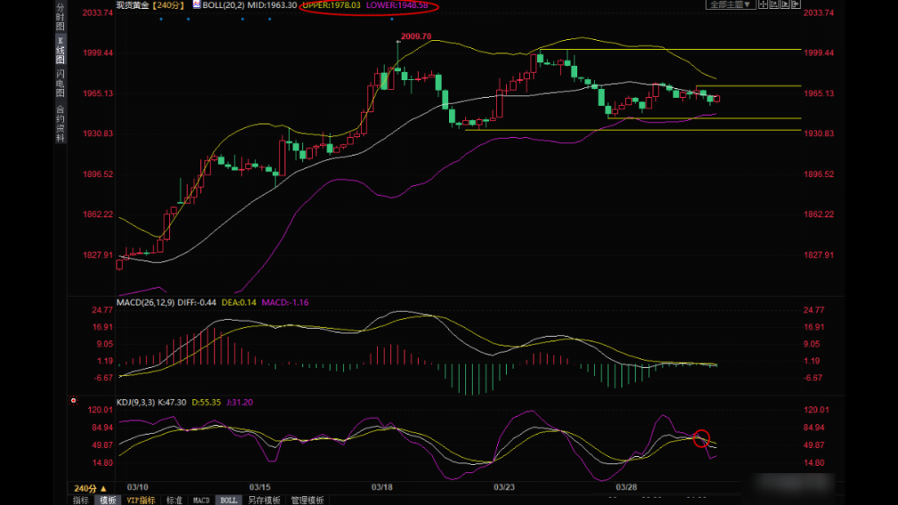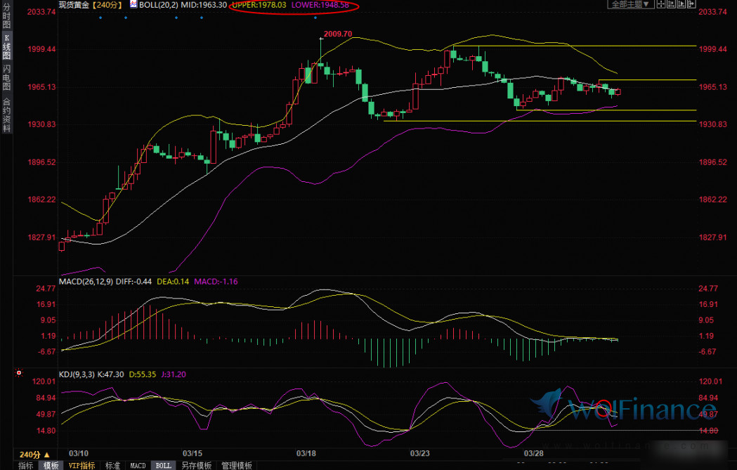 若金价意外强势顶破布尔线上轨 1978 附近阻力,则有望再度上探 2000 关口附近阻力,并可能会启动新一轮涨势。