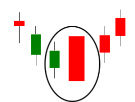 2、跳空高开,低走以最低点收盘,形成大阴线。