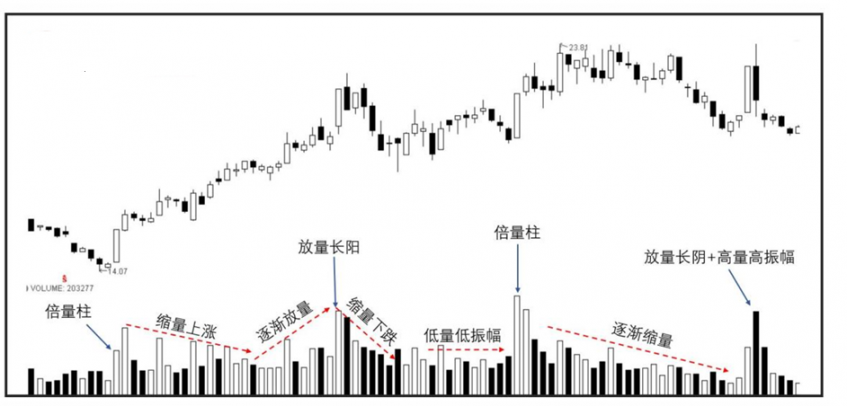 最后强调下,量价关系一定要结合所处的结构趋势和位置综合判断分析,比如高位的 放量可能是一种阶段见顶,低位的放量有可能是一种见底成交量。