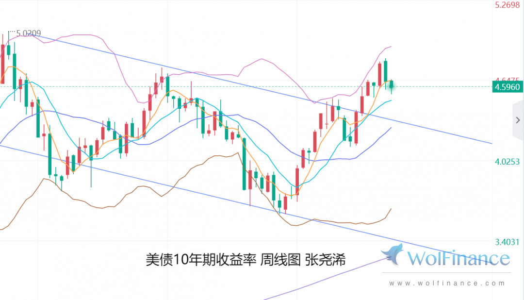 美债10年期收益率,日图走势也运行在短期均线及中轨下方,附图指标维持空头信号发展,走势偏弱看空,对金价产生利好,故此,综合来看,金价仍具看涨前景。