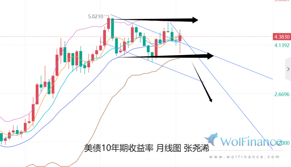美债10年期收益率,日图昨日也如期在上周五收取的反弹高位震荡见顶形态压力下,回落走低,对金价产生一定支撑,周图也仍运行在宽幅震荡区间内,对金价影响有限;