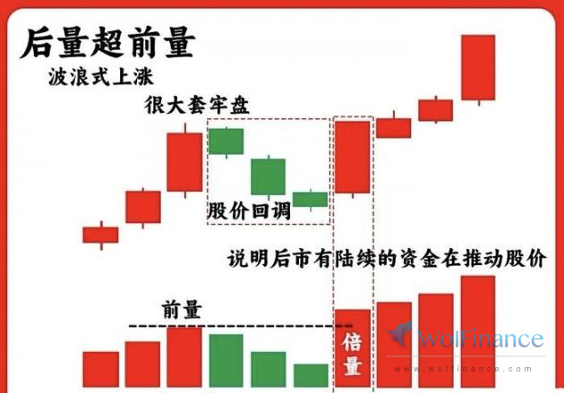 • 上涨后回调至前平台或均线时,成交量明显萎缩;