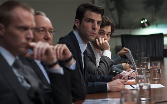 当初级分析师彼得在凌晨完成风险模型的计算,发现公司的资产组合已经远远超出风险临界值时,一场层层升级的紧急会议在摩天大楼的各个层级展开。交易主管威尔(保罗·贝坦尼饰)第一个被叫醒,他迅速理解了事态的严重性——他们持有的MBS和CDO头寸因为杠杆放大,一旦市场逆转,亏损将不仅是公司资本的数倍。威尔冷静却 cynically 承认:“我们之前卖的都是垃圾,但现在我们自己手里也全是。”