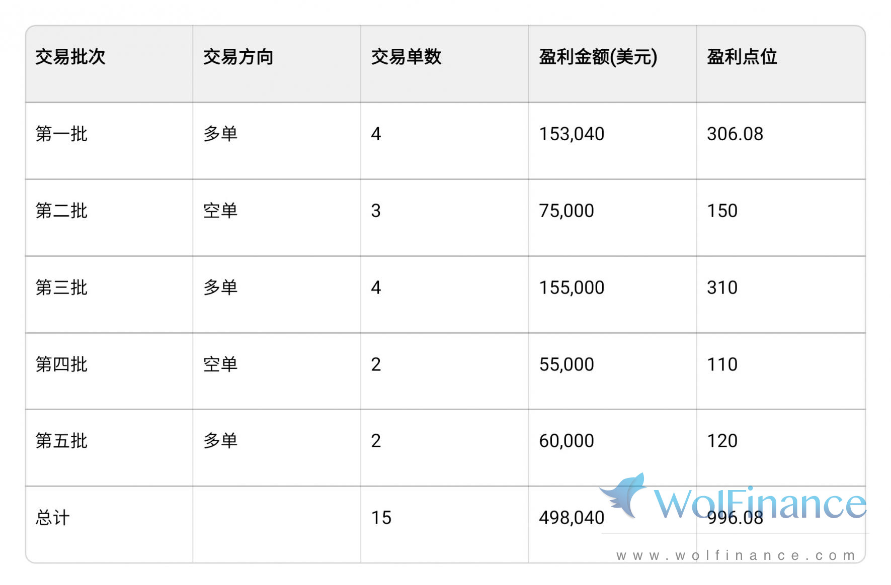 ❷盈利情况:①第一单盈利106.08点,利润53,040美元②第二单盈利90点,利润45,000美元③第三单盈利70点,利润35,000美元④第四单盈利40点,利润20,000美元★合计:盈利306.08点,利润153,040美元