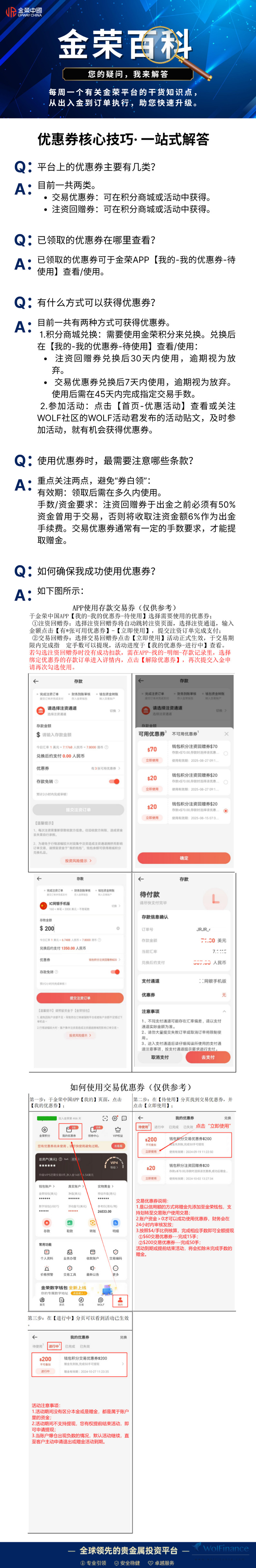 欢迎回到「金荣百科」!在解答金币疑问后,本期我们聚焦交易中的隐藏福利——优惠券使用指南。 我们整理了数个实用的优惠券相关问题,从领取技巧到使用规则,帮您轻松玩转平台福利,让每笔交易都更超值。