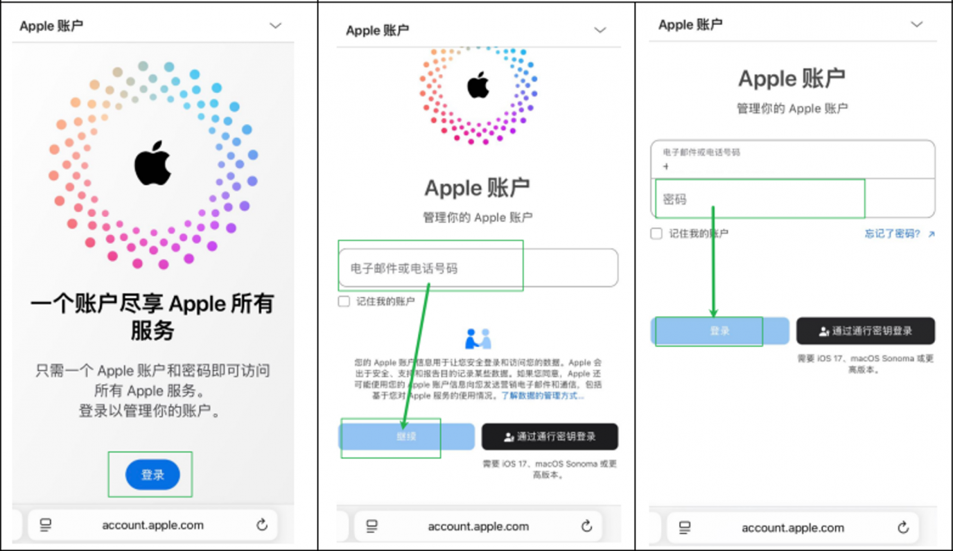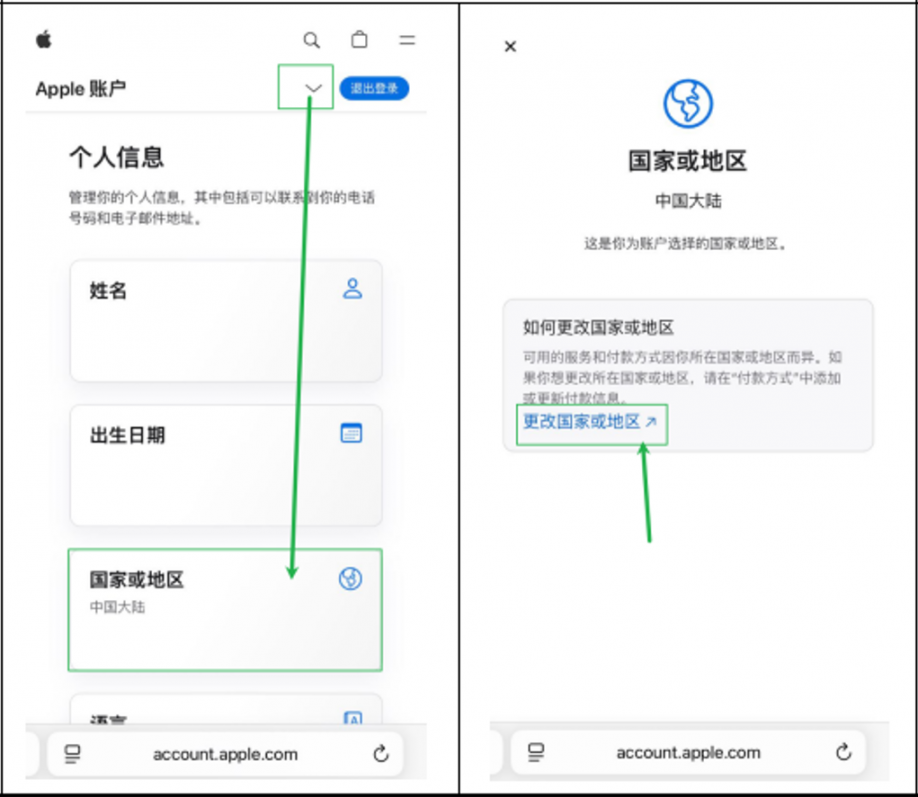 ②登录Apple账户,成功登录后点击右上方【︿-个人信息】,