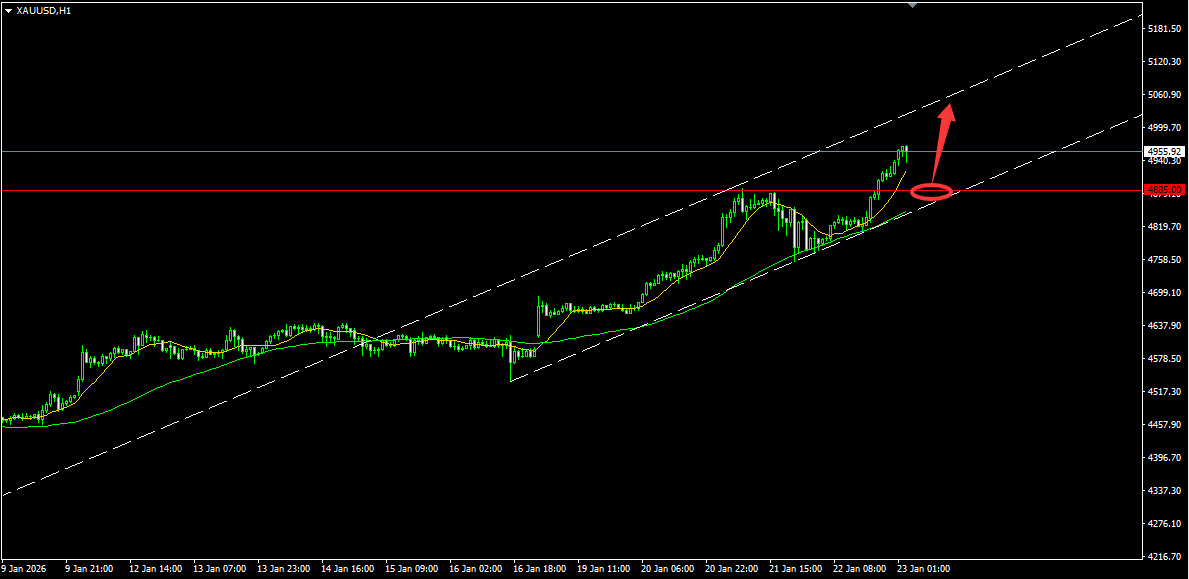 技术格局明朗,价格沿短期均线强势运行,任何回调都被视为多头进场机会。关键支撑上移至4885附近,此处与短期均线及昨日突破位形成共振。操作上应以4865为坚定防守,在此支撑区域布局多单,耐心持有并看向5000整数关口乃至更高目标。