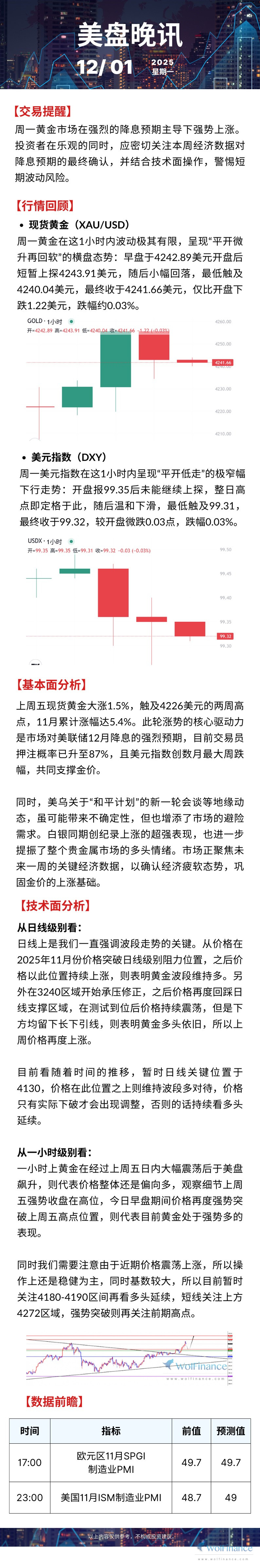 【美盘晚讯】12月1日环球金市全日脉络