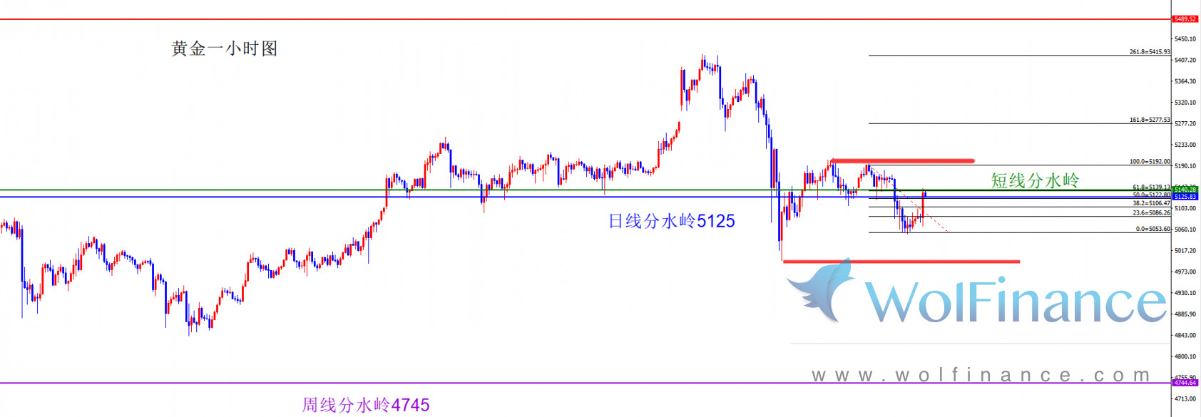 我们观察近期日线市场表现,在前期价格首次触及至5597附近出现快速承压,价格直接跌破日线支撑位置,随后价格跌破后并快速回踩周线支撑位置,伴随着时间的推移目前价格已经再度站上日线级别阻力位置,则前期阻力变支撑,针对周二黄金出现大幅承压的表现,价格进行刺破日线分水岭位置,但是最终收盘看依旧在分水岭位置,昨日周四价格进行收盘在日线关键分水岭位置下方,则目前日线属于略微偏空,上方5206位置依旧是关键分水岭。