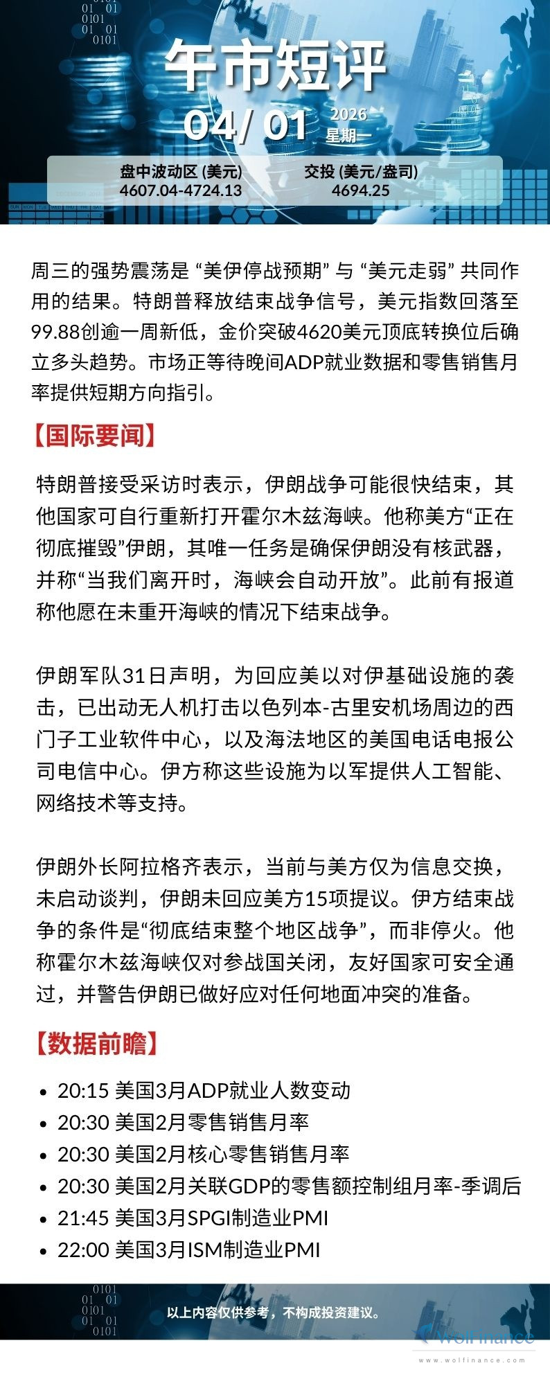 《午市短评》送达!午盘行情走势速评,复盘国际要闻影响,为您提供交易参考。点击查看→