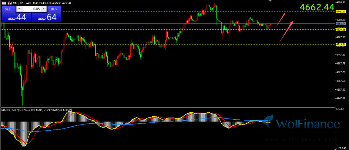 日线级别,金价昨日表现较为平淡录得小实体收盘,盘中曾尝试挑战4700关口但未能攻破最终报收4650美元附近,短期或仍处于较宽泛区间内多空拉扯,交易者留意4520附近关键支撑防守情况。1--4小时级别,短线走势自4350附近次低反弹测试4800后上周回吐部分空间,至当前盘中最低测试4610上方后再度企稳。截止当前亚盘午市时段,金价继续徘徊于隔夜拉扯区间内表现平淡,或等待更多情绪信号提供指引。交易者日内或留意4620/4520附近支撑测试情况或尝试短多,上方压力4730/4800附近