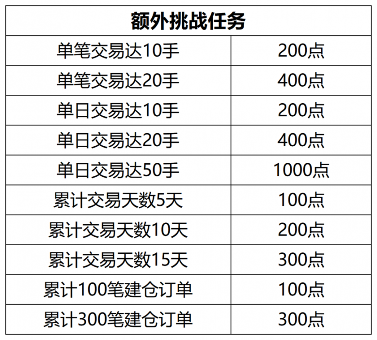 (4) 累计建仓订单数100笔即获100点。