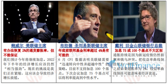 美联储暗示加息步伐将加快。在本月加息75个基点后,目前美联储的联邦基金利率区间处于1.50%-1.75%,这也预示着若年底升至3.25-3.5%,美联储还需要再加息175 个基点。