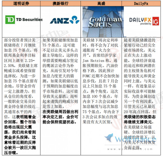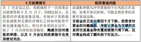 北京时间周四(7月28日)凌晨2点,美国联邦公开市场委员会(FOMC)将公布利率决议。市场预期较为趋近,普遍认为将加息75个基点。虽然美国国家经济研究局在确定经济衰退时点时考虑的指标并没有暗示经济处于衰退期,但近期其他数据显示经济正快速失去动能。预计鲍威尔将引导市场预期9月将加息50个基点,并强调政策利率达到委员会认定的中性利率的重性。如果鲍威尔暗示9月份可能再次加息75个基点,黄金前景可能会变得更加负面。